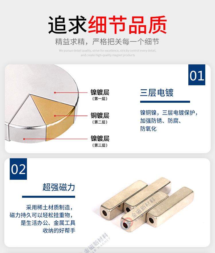 金磁新材料 烧结钕铁硼磁 按需定制 磁力强劲 尺寸精准 磁性积木磁铁